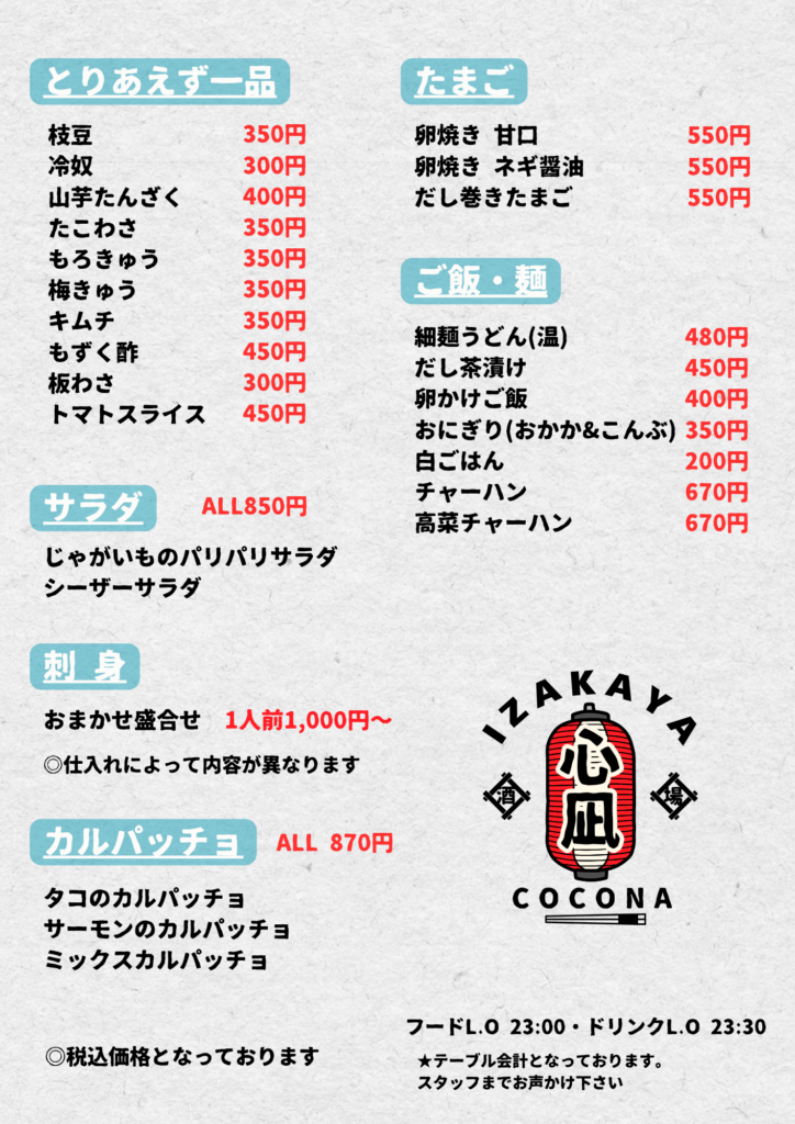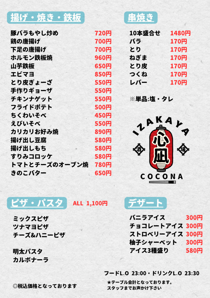 居酒屋心凪COCONATEL0903237099717時半~24時まで
